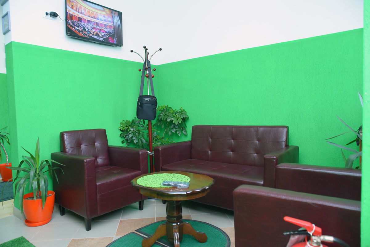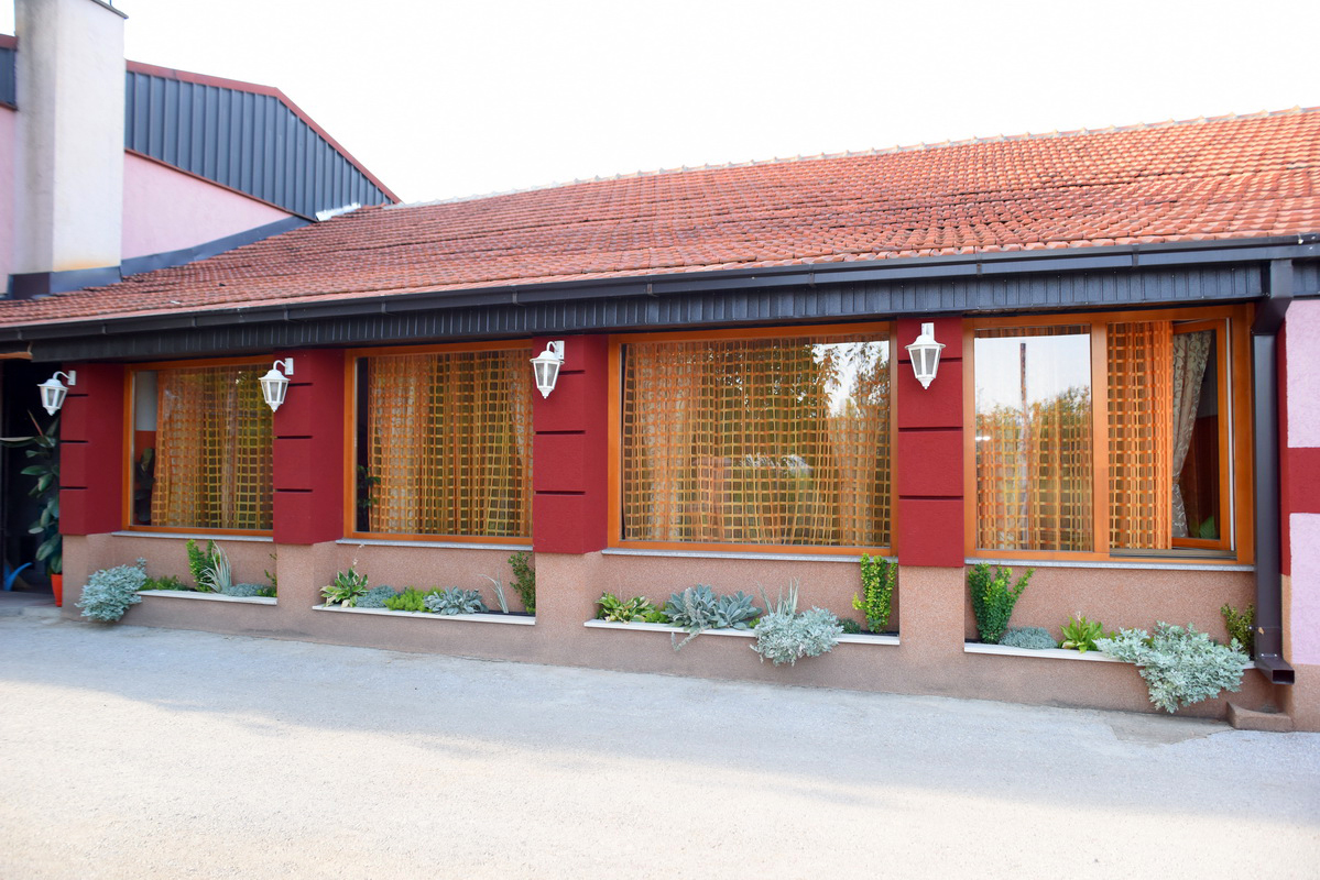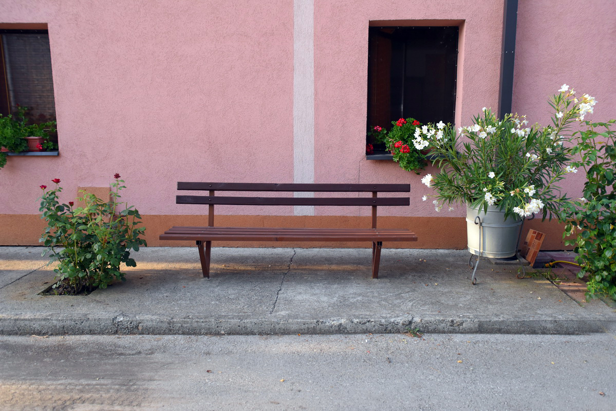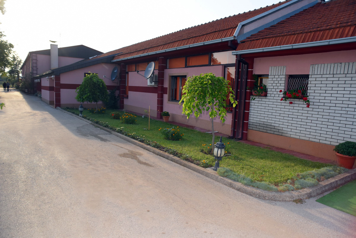 Prostrano dvorište Doma za stare „Sunčana jesen“ odlikuje se zelenilom, cvećem, fontanom, letnjikovcem i mnogim klupama za odmor.